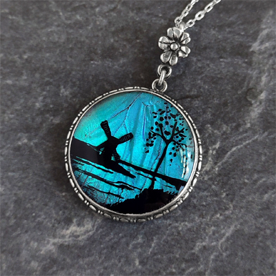 イギリスアンティーク モルフォ蝶 LH社 オーバル シルバーネックレス |