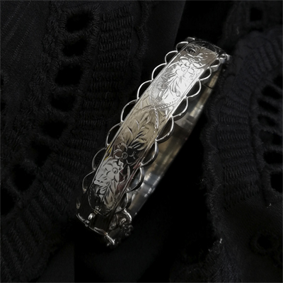シルバー製ブレスレット 花とアカンサスの手彫り装飾