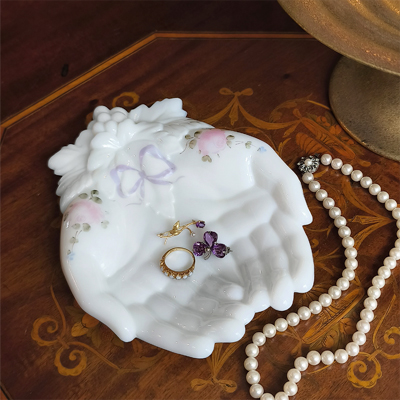 リボンとフラワーペイント ハンドモチーフトレイ |