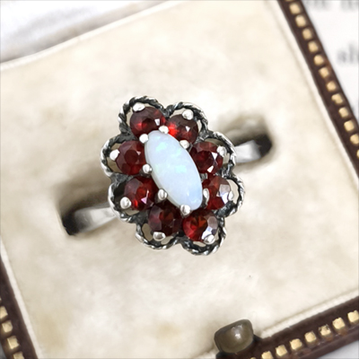 スターリングシルバー ガーネット&オパール