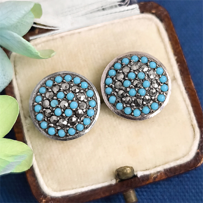 スターリングシルバー マーカサイト ターコイズ サークル イヤリング |