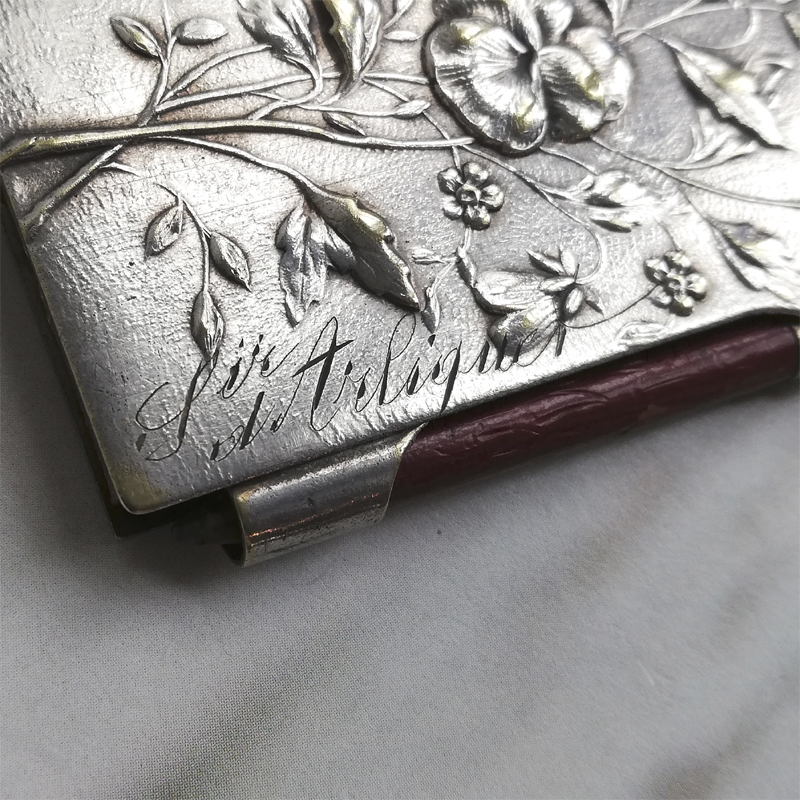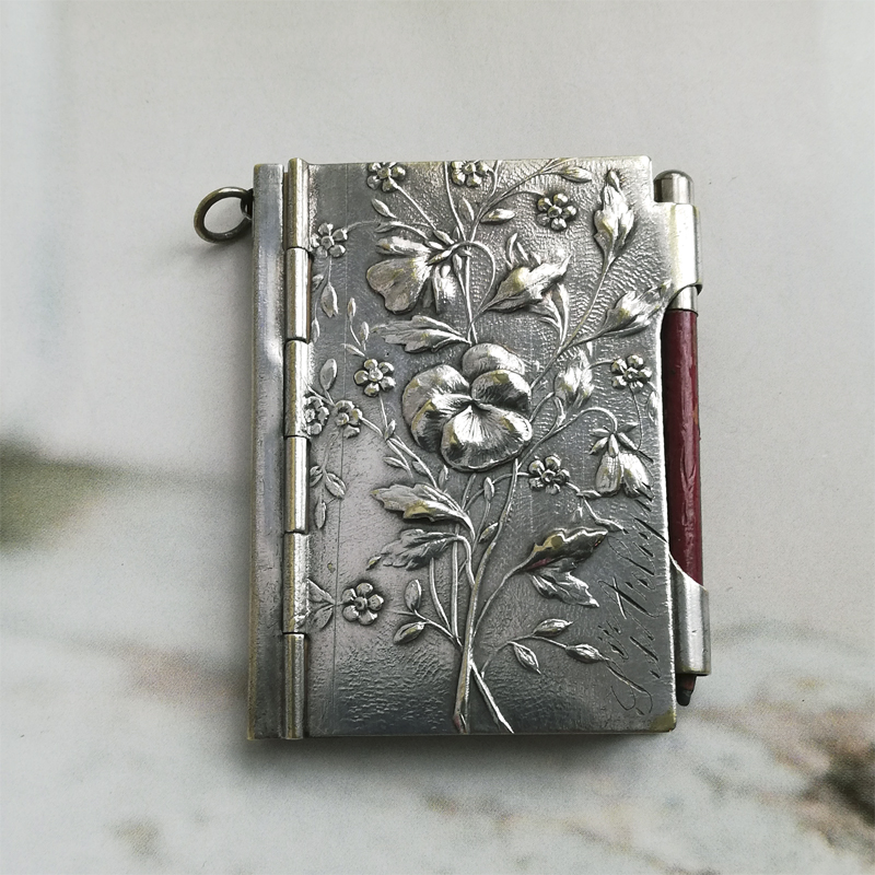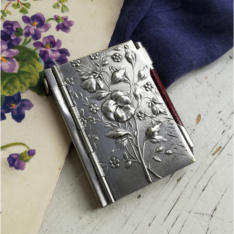 シルバープレート ビオラと勿忘草の装飾 舞踏会の手帳