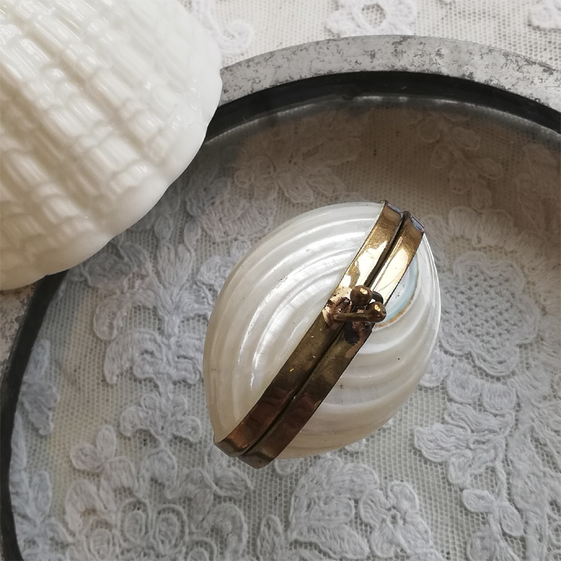 マザーオブパールの丸みを活かして作られた小さなケースです。