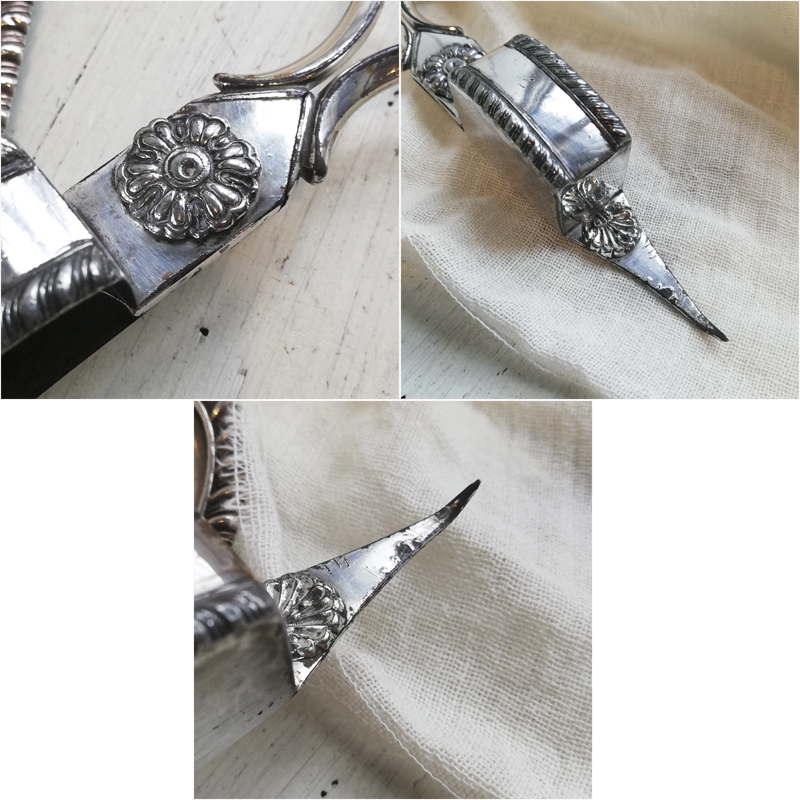 蝋燭の芯の切り取りながら火を消すヴィクトリアンならではの道具で、ジョイント部分にロゼッタの様な装飾と先にシェルの装飾があります