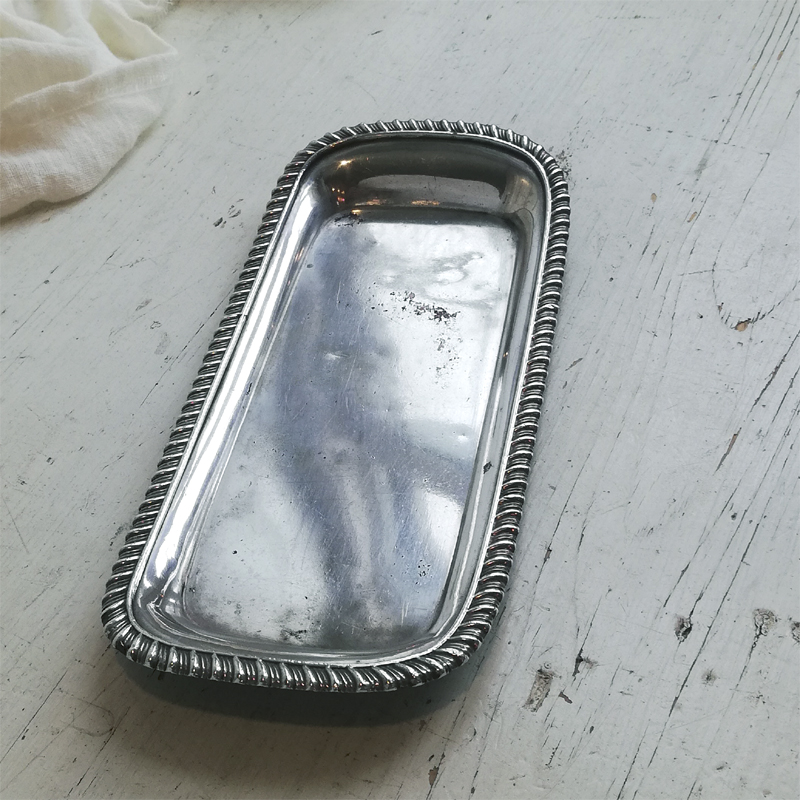 トレイの表面にシルバープレートの剥がれや小さな凹みがあります。
