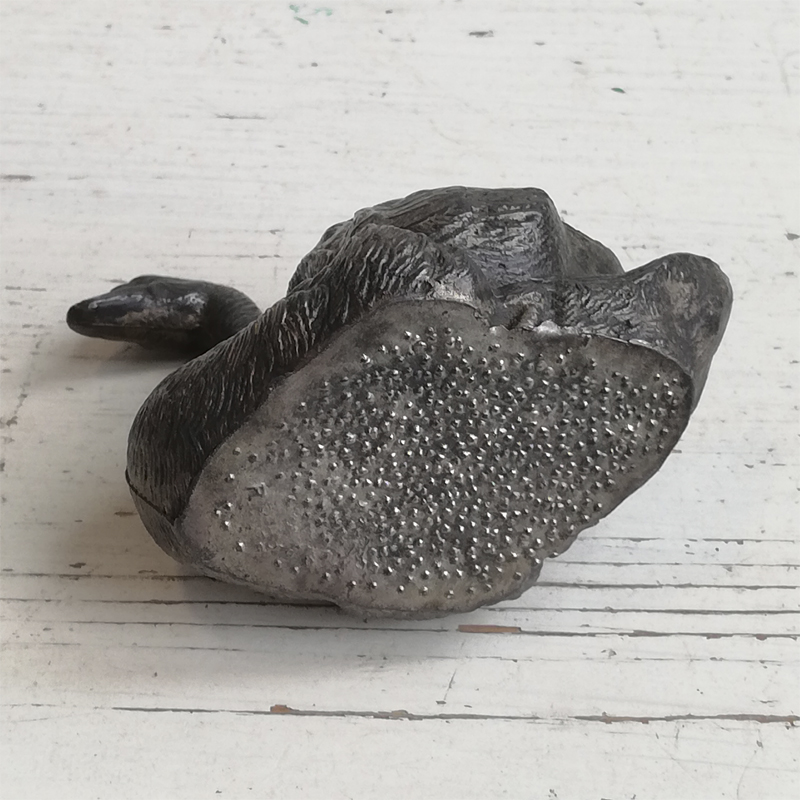 黒っぽい色のメタル製で、羽並みも細かく表現されています。