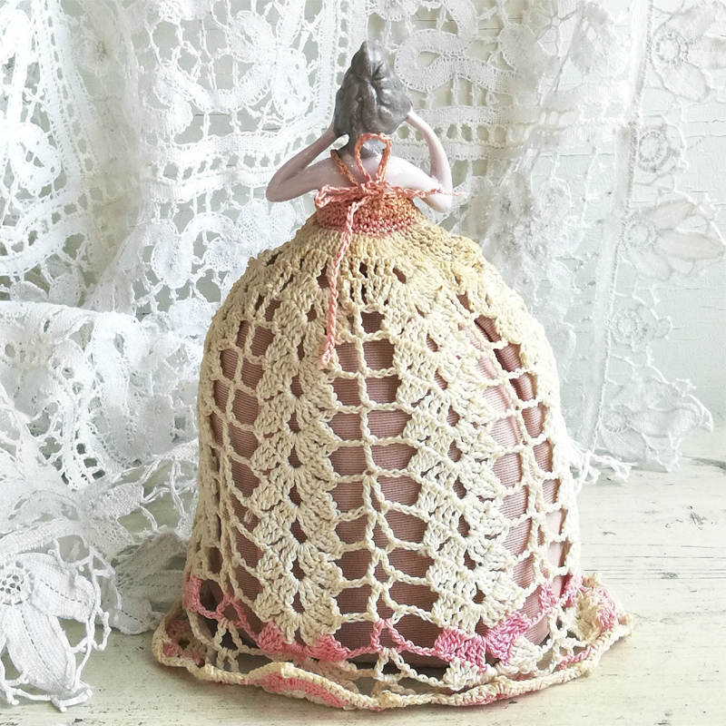 高く結い上げた髪と手の表情が美しいハーフドールのピンクッションです。
