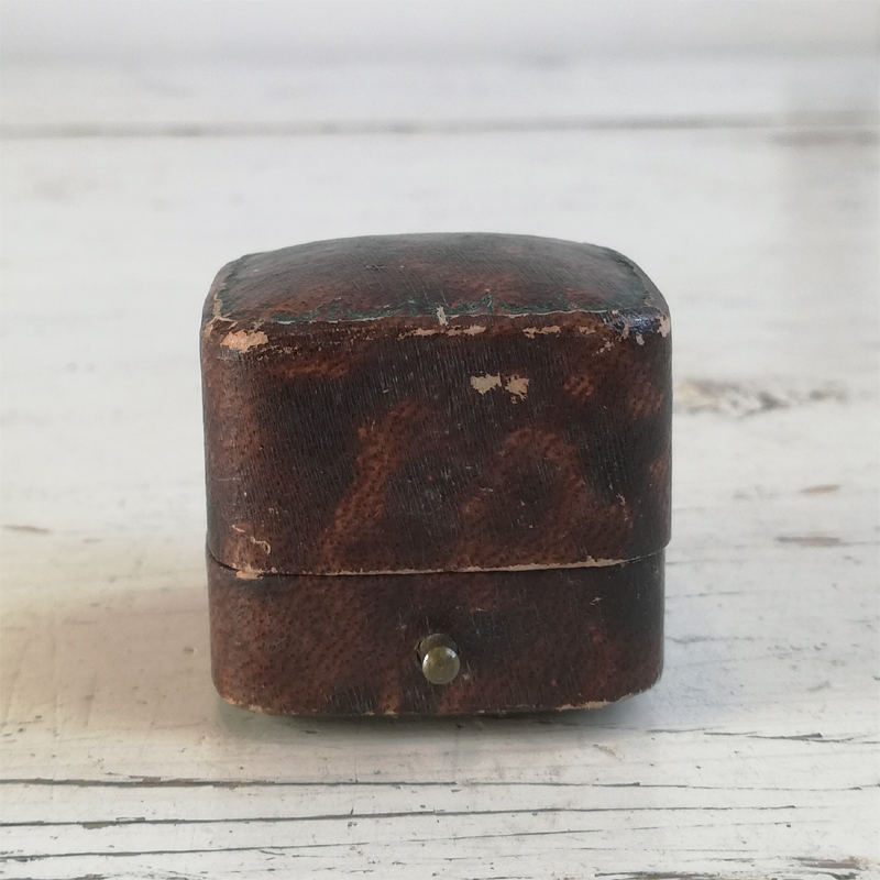 リングを収めるクッションはベージュのベルベットで若干変色があったり、表面のフェイクレザーにちらほら擦れや剥がれがありますが全体的に良いアンティークコンディションです。