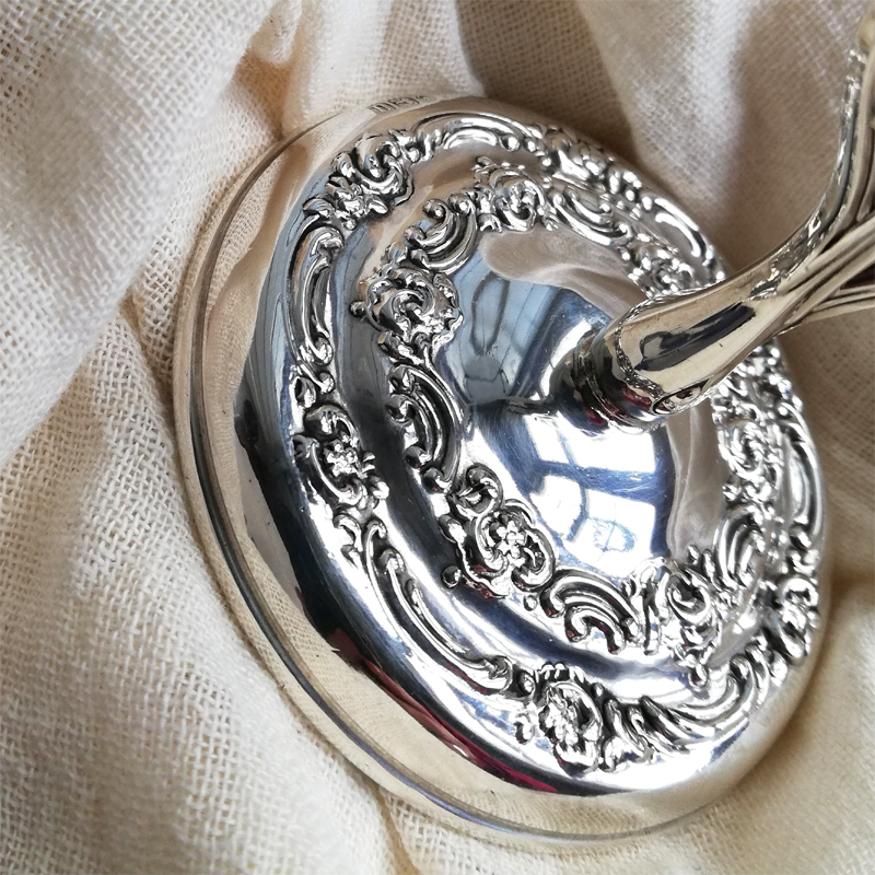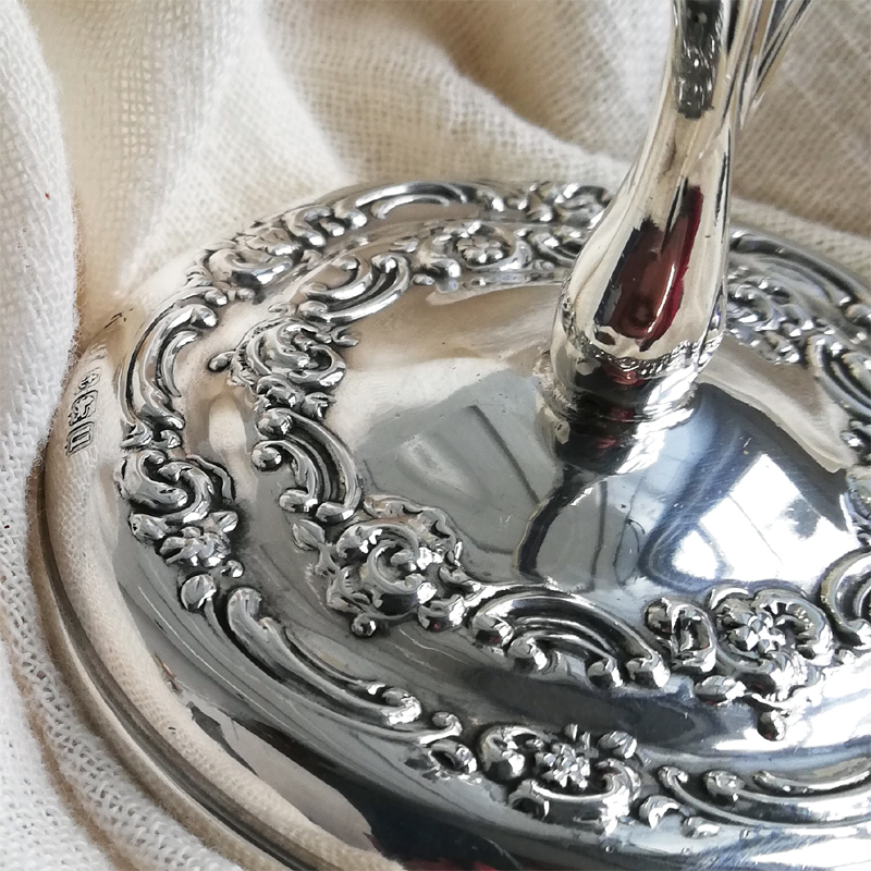 台座の周囲はCスクロールと花のガーランドがエンボスで2重に施されて大変エレガントな雰囲気です。