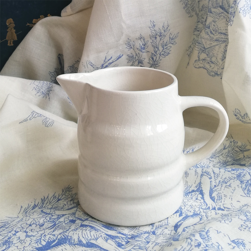 真っ白というより優しいミルク色をしたジャグは縞模様が控えめなアクセントになっています。
