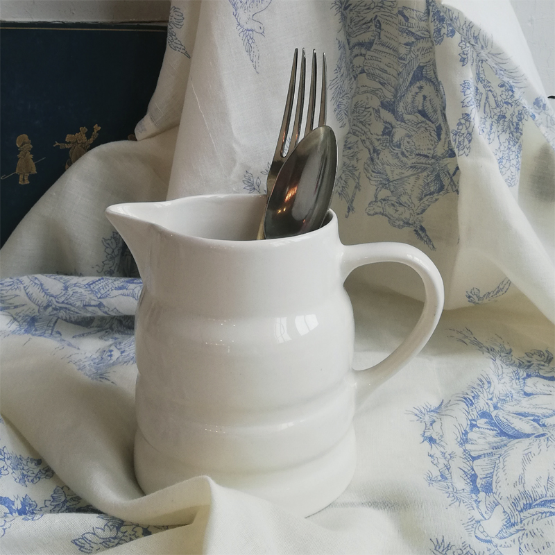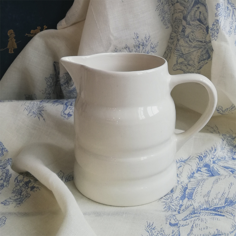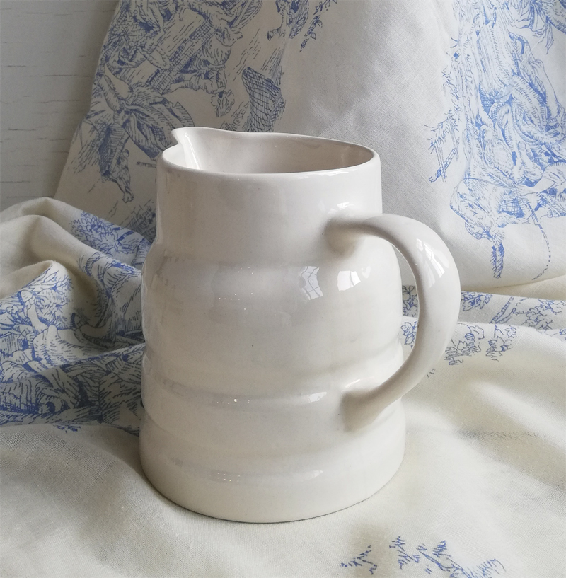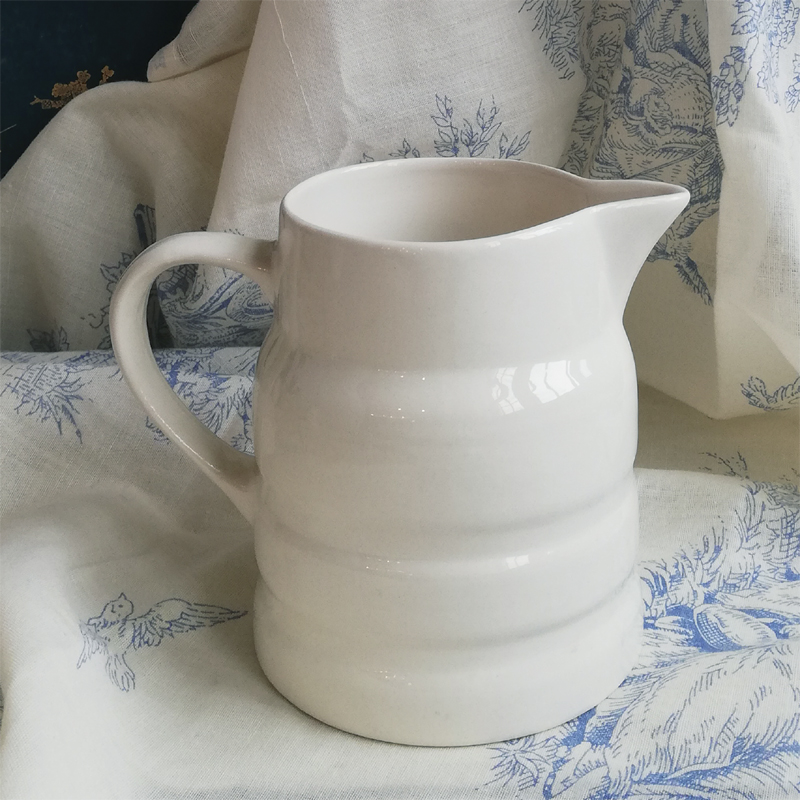 真っ白というより優しいミルク色をしたジャグは縞模様が控えめなアクセントになっています。