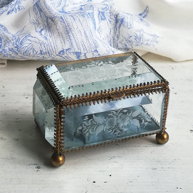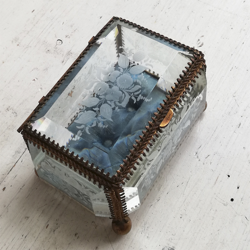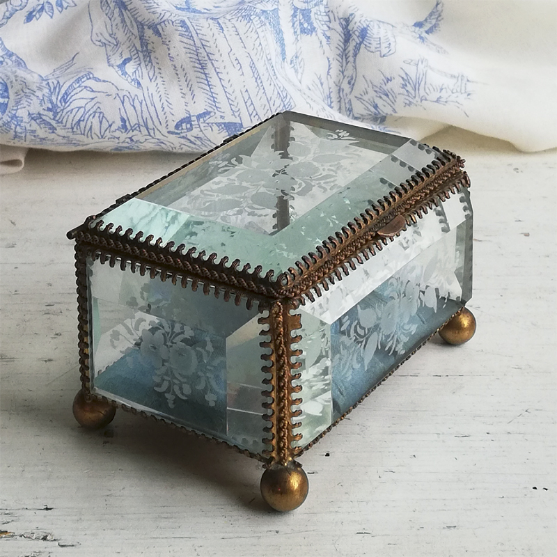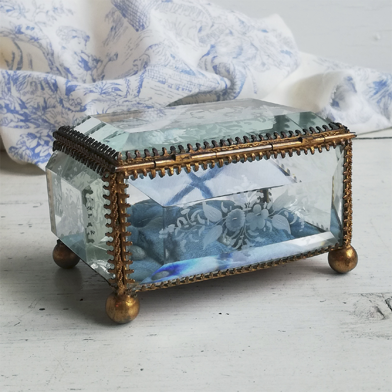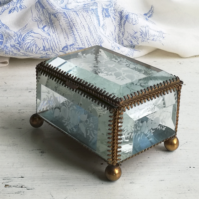 底以外の5面を厚みのある面取りガラスで囲んだフランスのジュエリーボックスです。