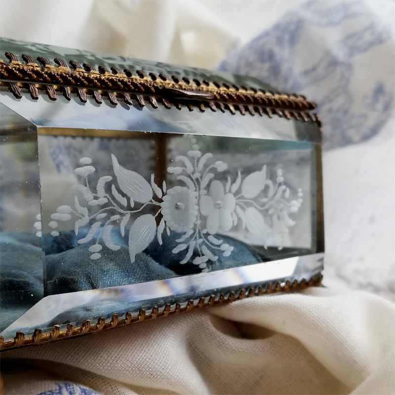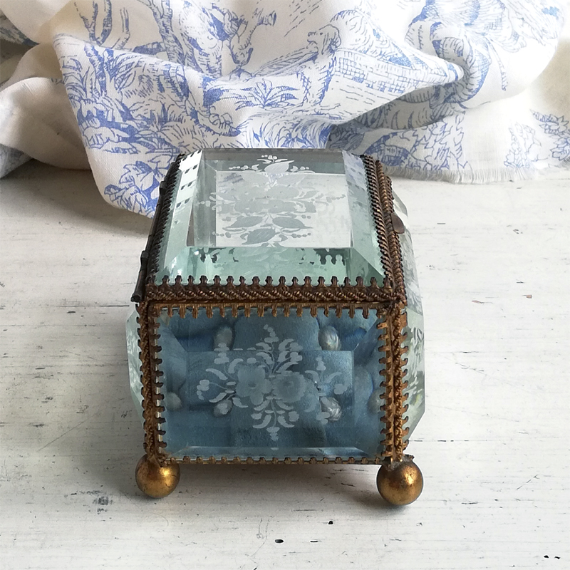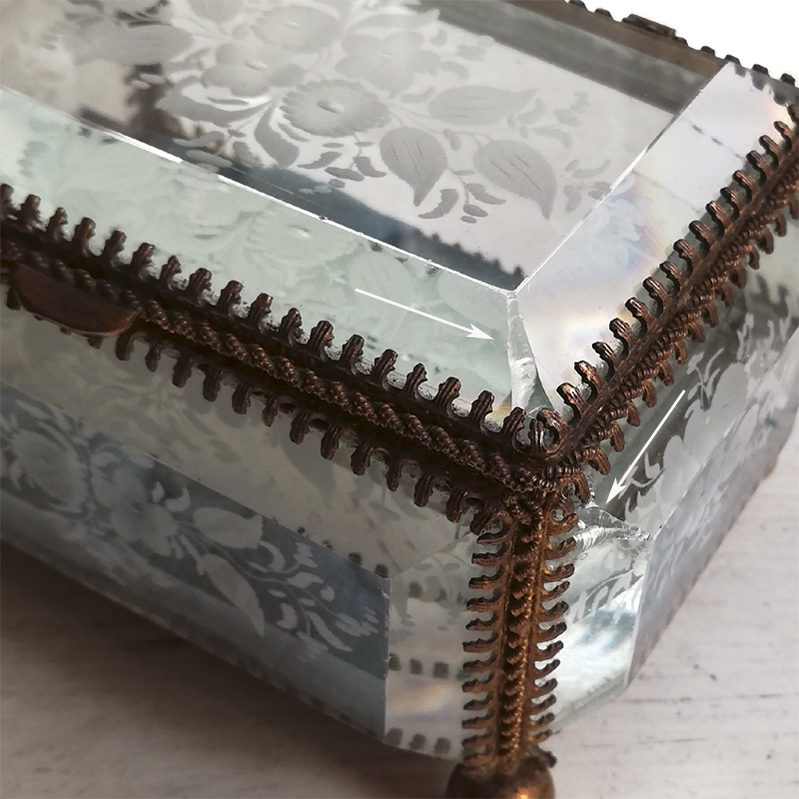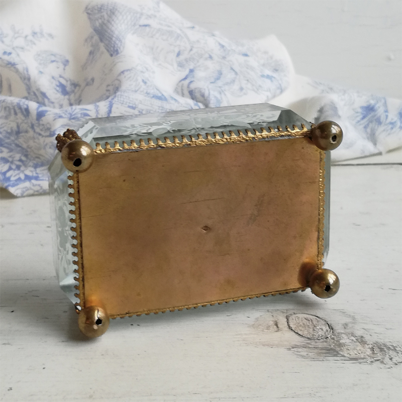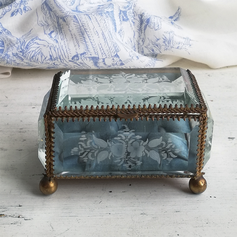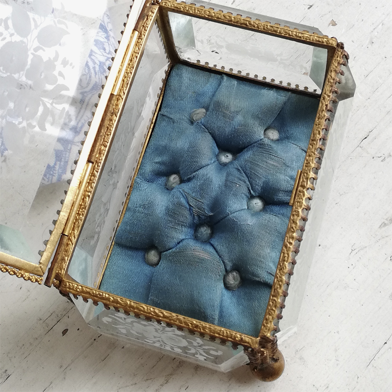 底以外の5面を厚みのある面取りガラスで囲んだフランスのジュエリーボックスです。
