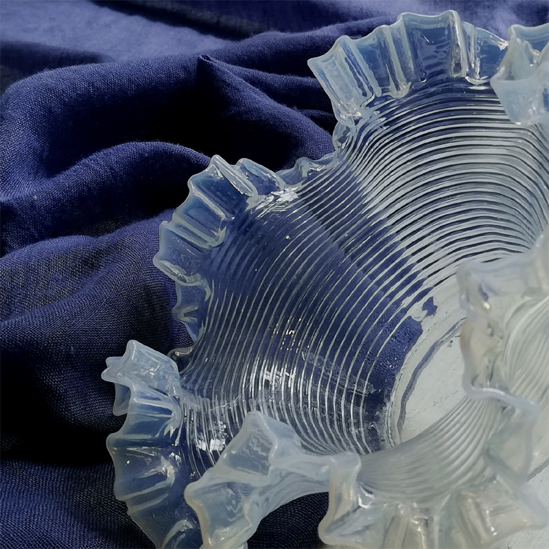 緩やかに広がるエッジには細かに波打つフリルが踊るようにあしらわれ小ぶりながら存在感があります。
