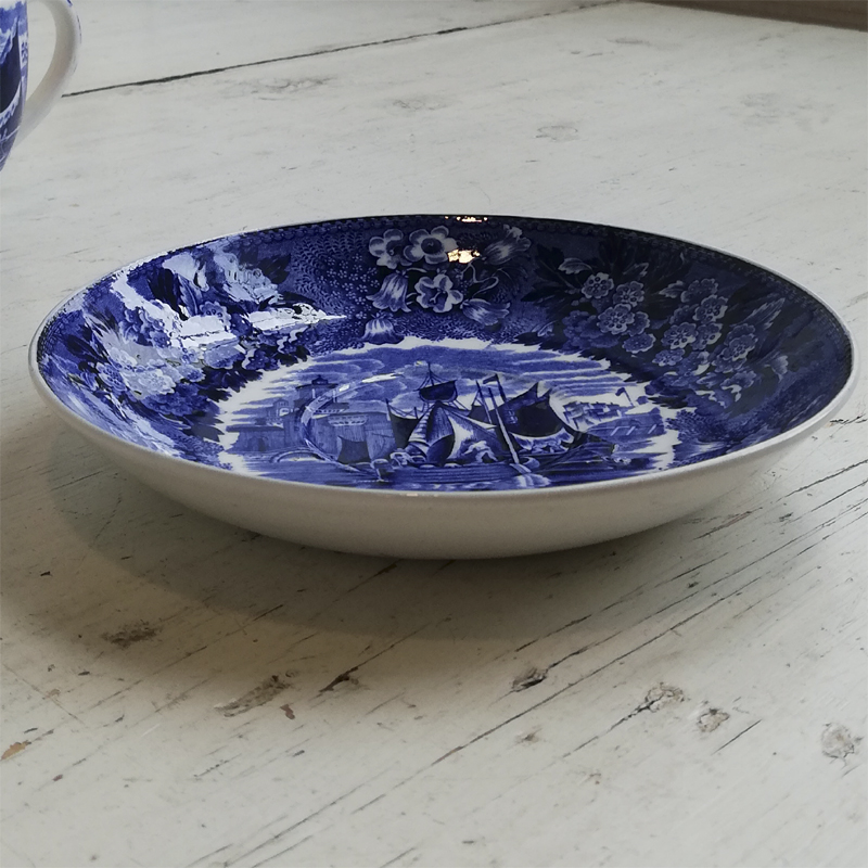 ブルー&ホワイトで表現した街の風景や丸みのあるカップのフォルムや深めのソーサーなど大変クラシカルな趣きで飽きのこない表情は日々のお茶の時間を豊かにしてくれると思います。