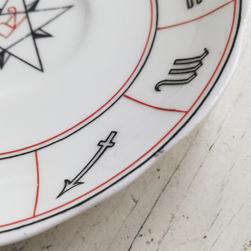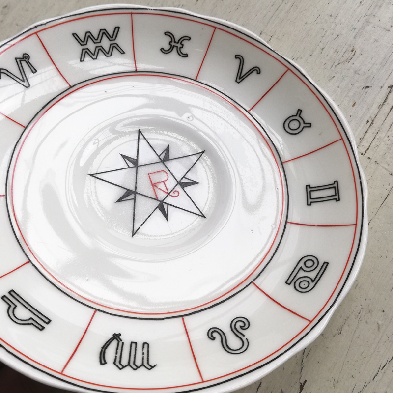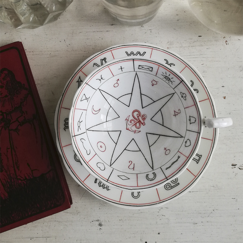 1904年に英国のデザイナー ネル・ロス女史が考案し、エインズレイにて制作された紅茶占いのカップ&ソーサーです。紅茶占いとはティーカップに残った茶葉の形や位置で未来を占う、19世紀の英国で楽しまれた遊びです。