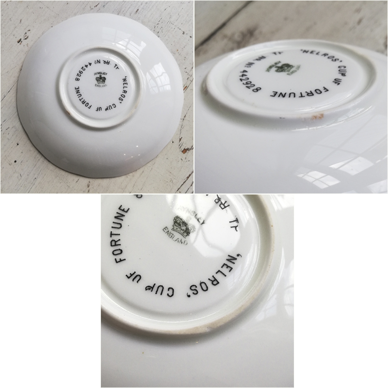 そしてネルロス占いカップとソーサーの裏にはTHE 'NELROS' CUP OF FORTUNEの名と1904年のレジスタードナンバーが記されています。
