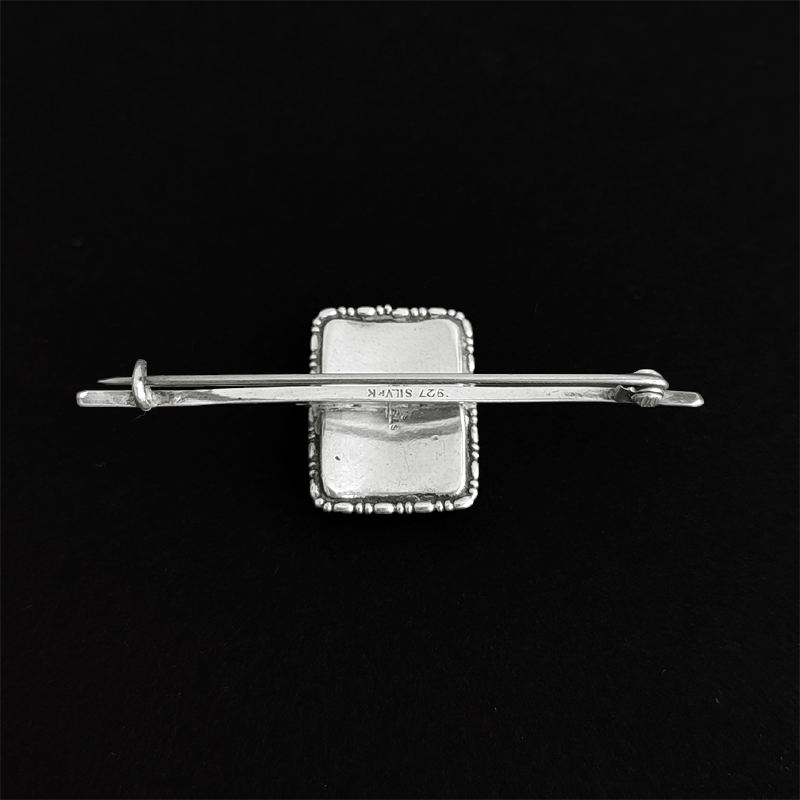 すっきりとしたバーブローチタイプのため、ジャケットのラペルやニット、ストール留めなど、さりげないアクセントとして上品にお使いいただけます。