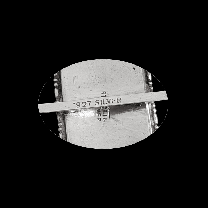 縦長の長方形デザインをシルバーカラーのフレームで囲み、甘さを抑えた端正な印象に。