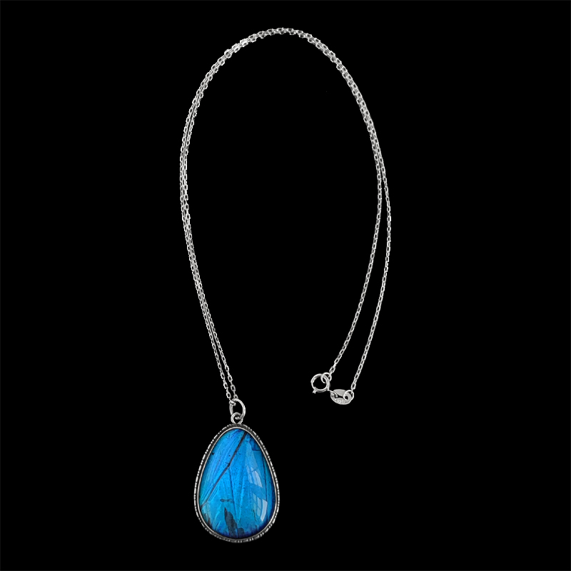 鮮やかなブルーが印象的なバタフライウィングジュエリー。