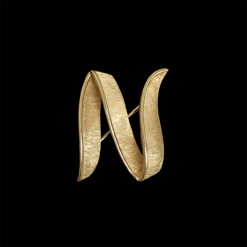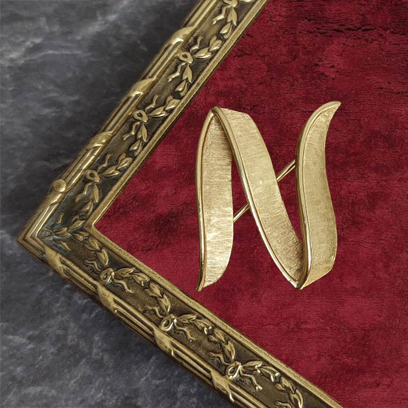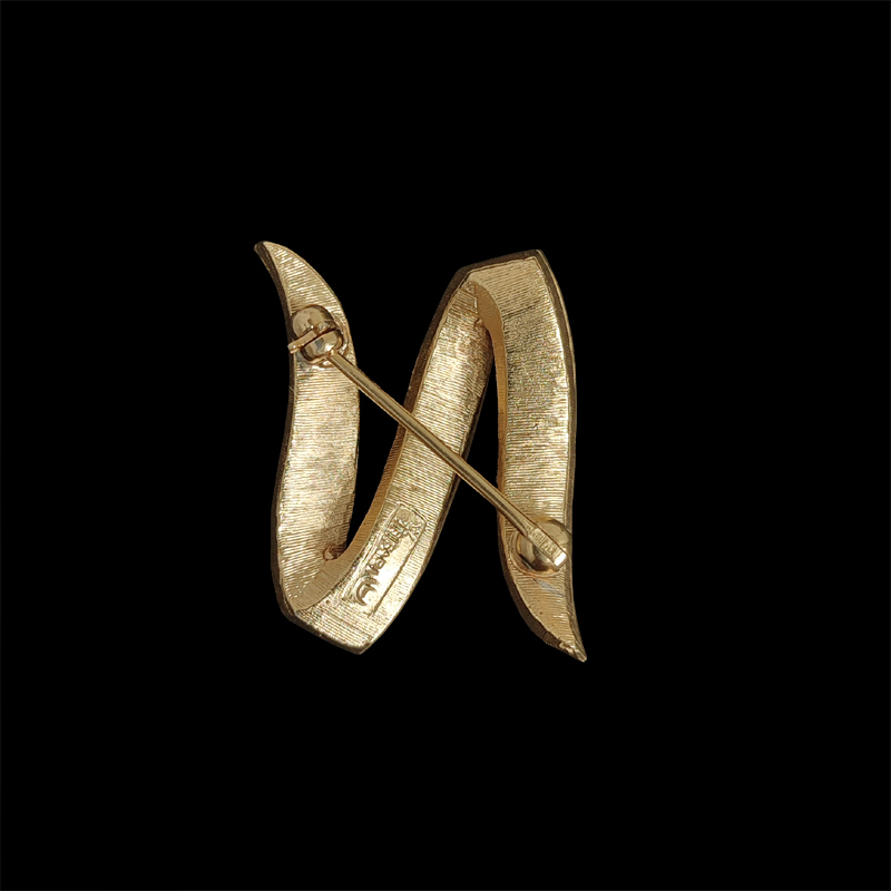 Crown Trifari クラウントリファリ ゴールドトーン イニシャル ブローチ N