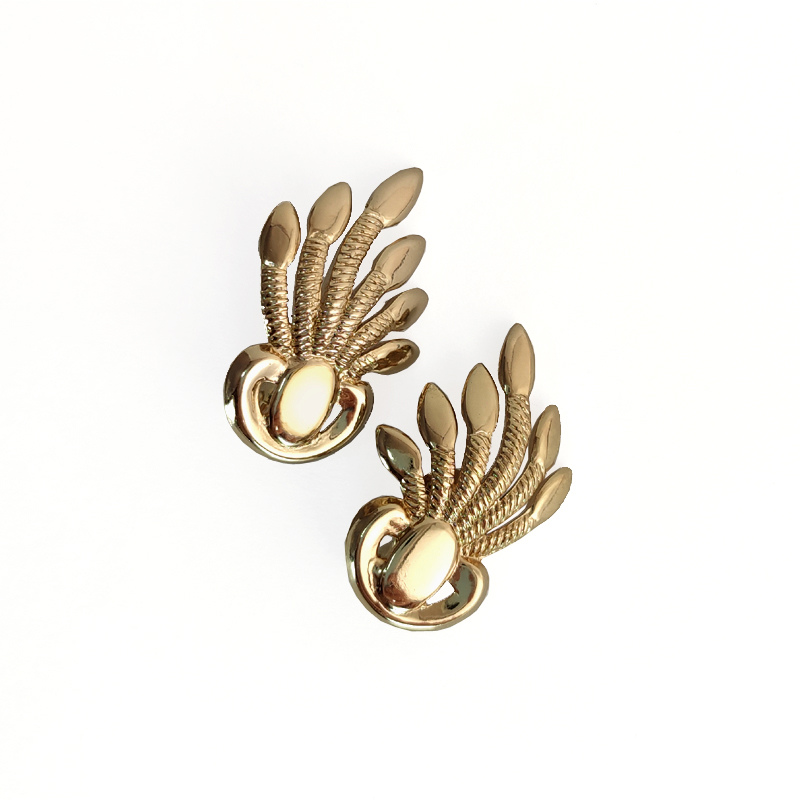 1950年代には大振りデザインが人気を呼び、ローズゴールドやイエローゴールドトーンのメタルジュエリーが流行。多くの女性が男性同様に働き始め、「テーラードジュエリー」と呼ばれるスタイリッシュなデザインが働く多くの女性に好まれました。