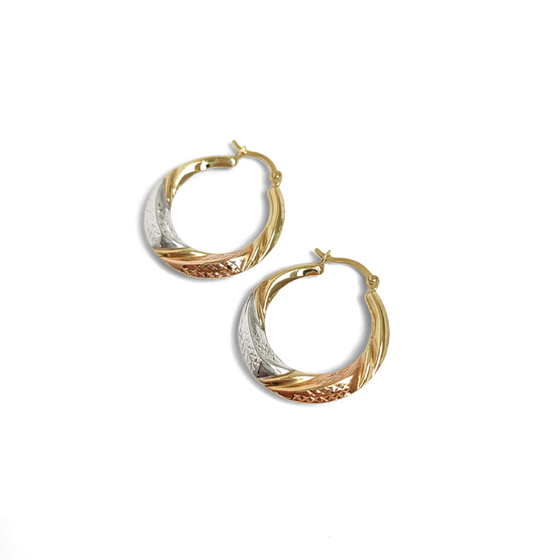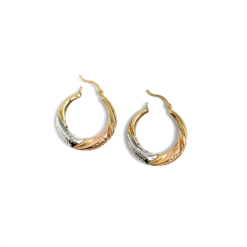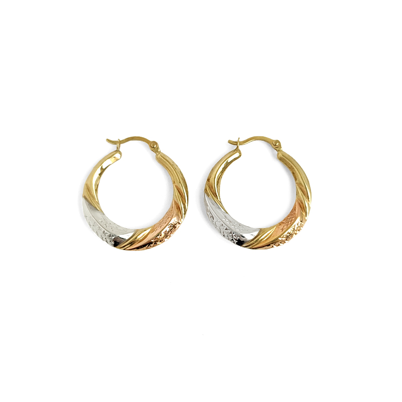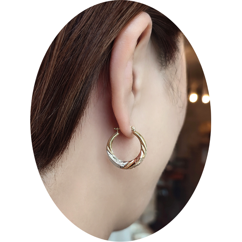 イエロー・ピンク・ホワイトゴールドの3つのカラーを交互にツイストしています。
