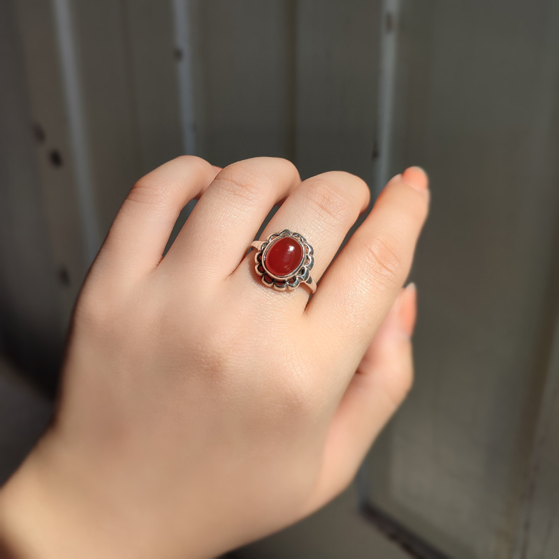 リッチなカラーのカーネリアンが印象的なシルバーリング。