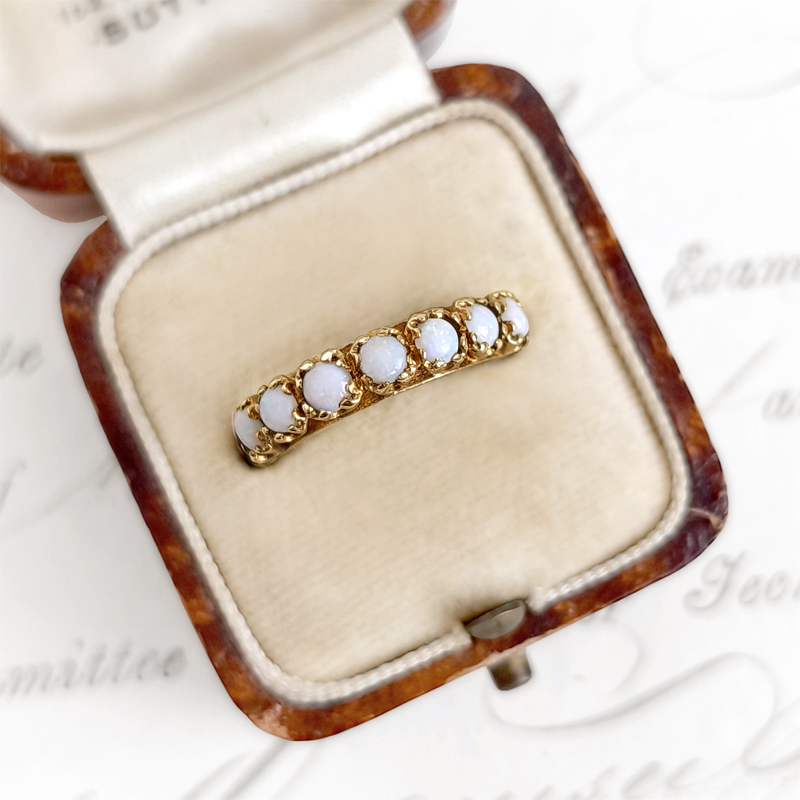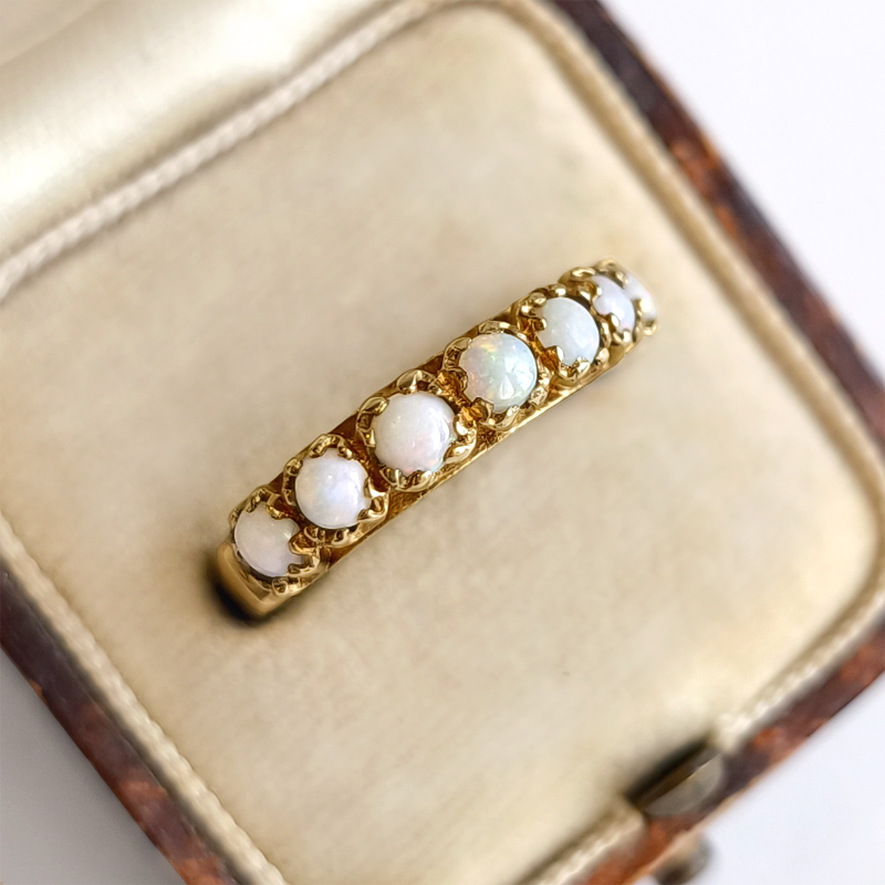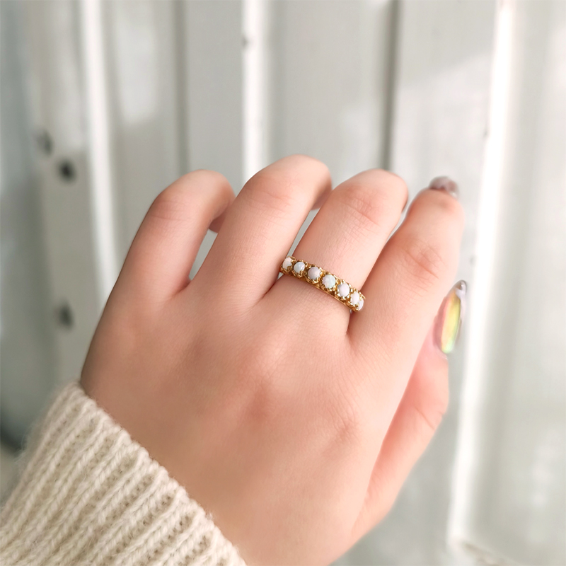 オパールが7粒並んだ9金のヴィンテージリング。