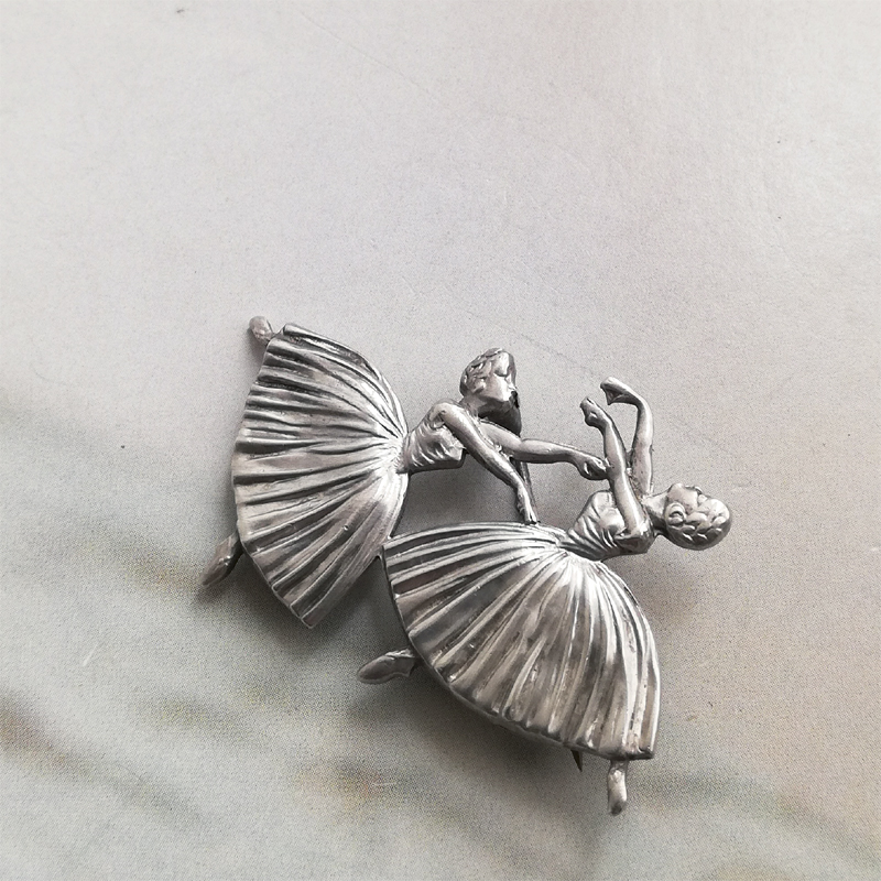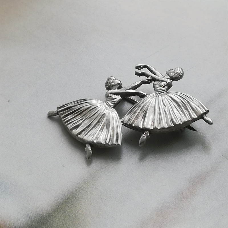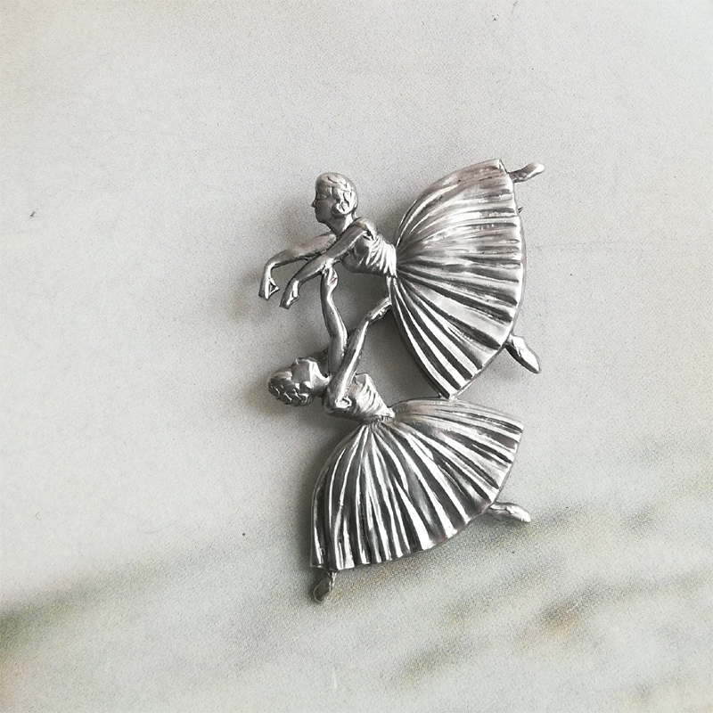 踊る2人のバレリーナをモチーフにしたスターリングシルバーのブローチです。