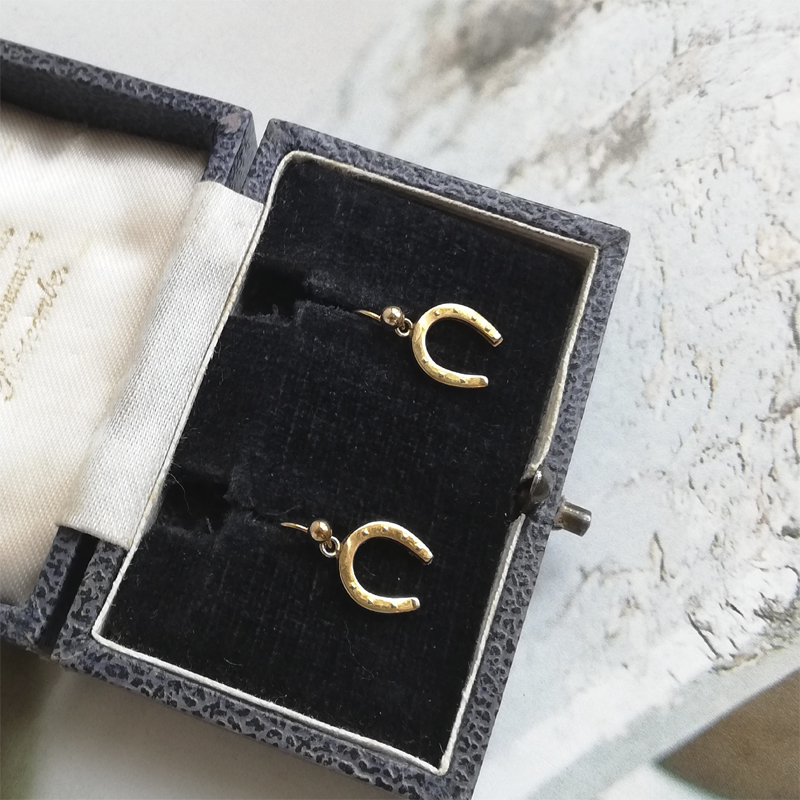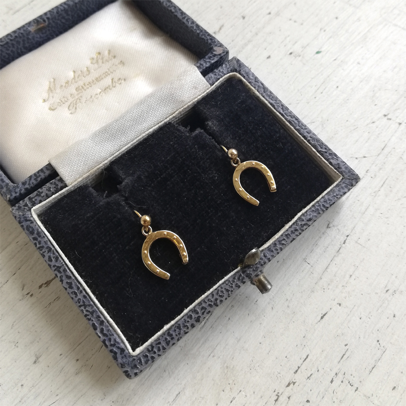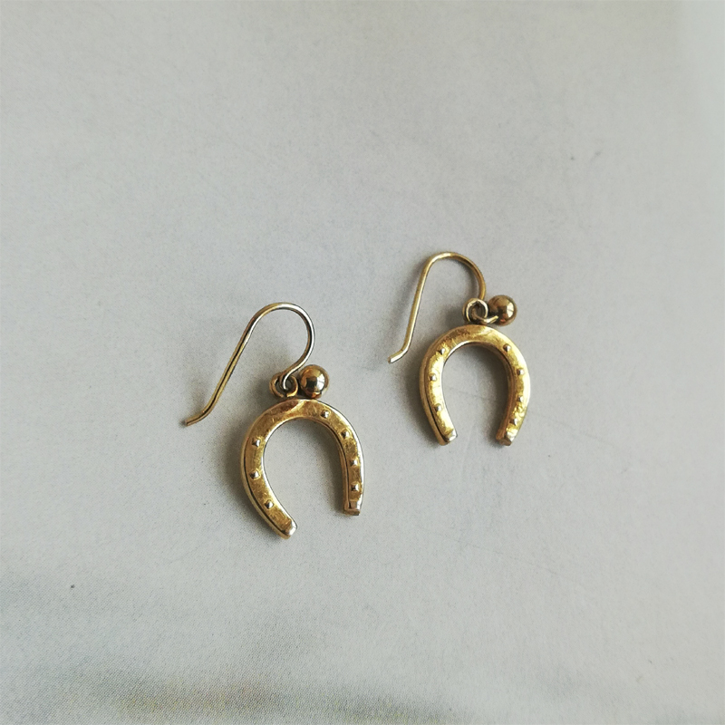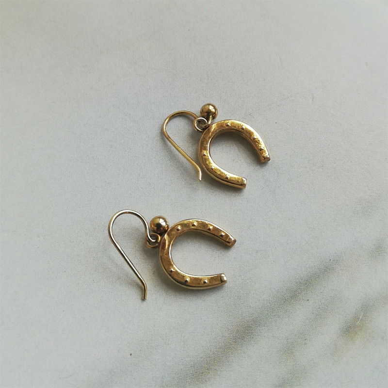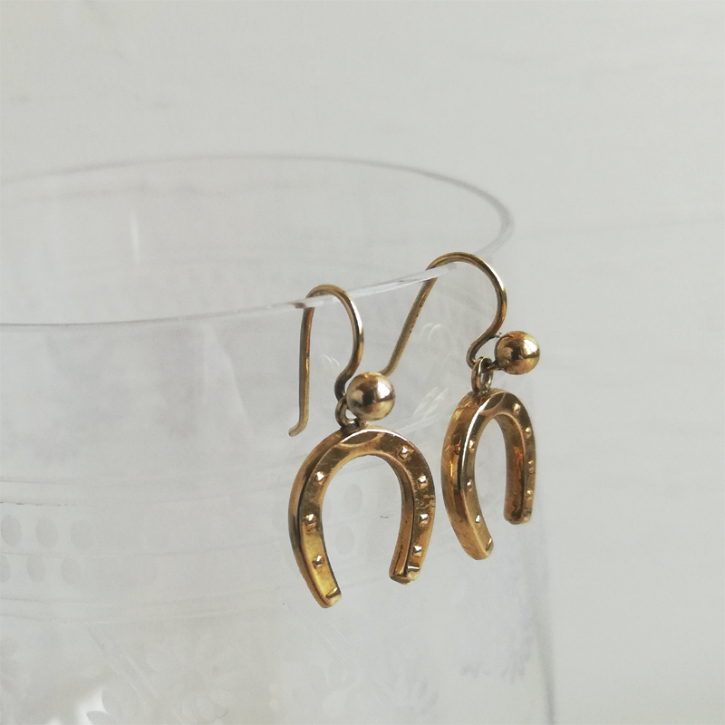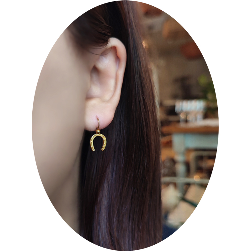 幸運のモチーフのホースシュー(馬蹄)のダングルピアスです。