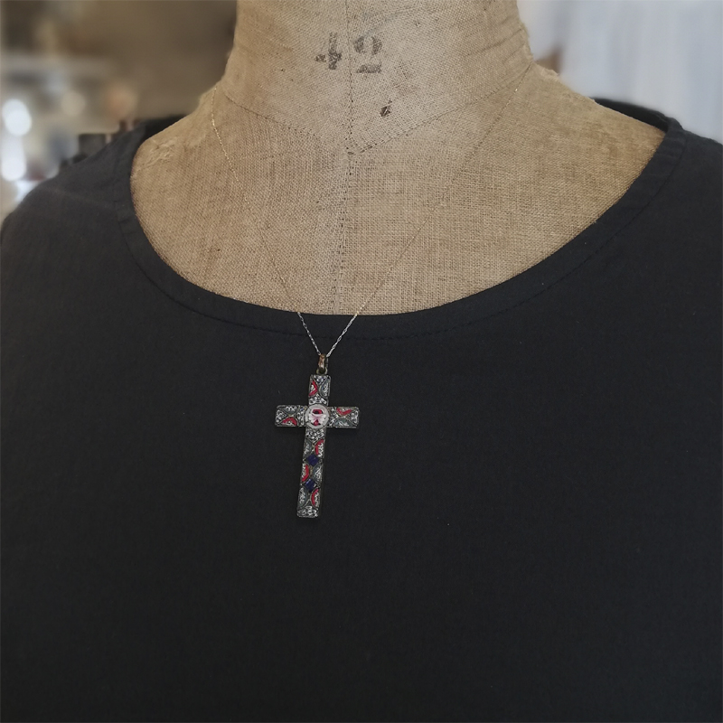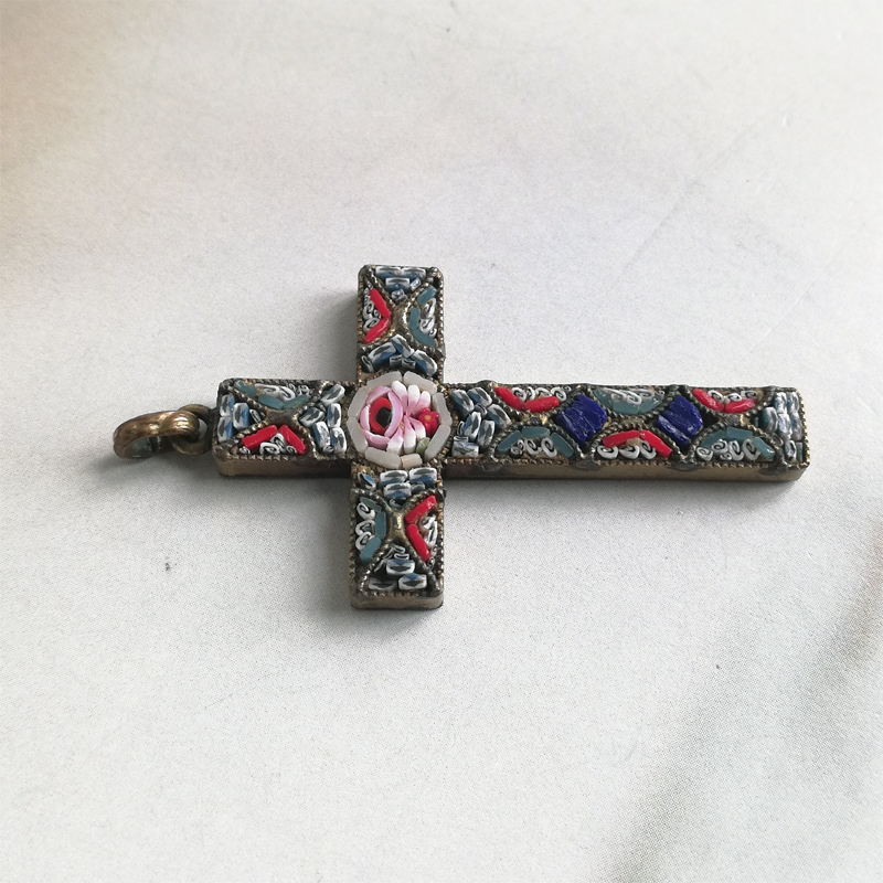 イタリアの伝統工芸マイクロモザイクのクロスのペンダントです。