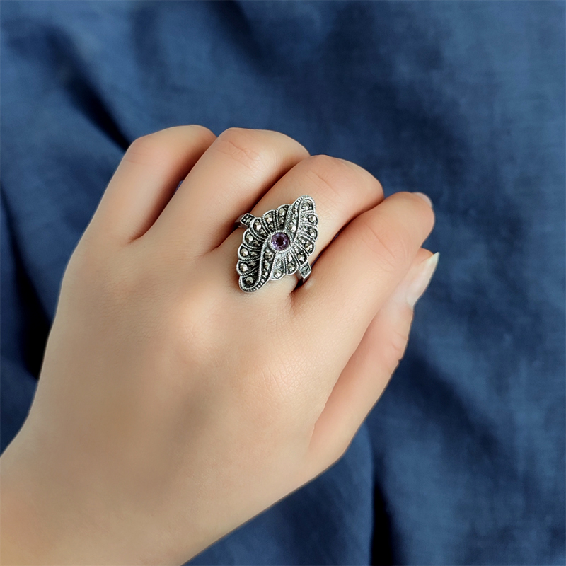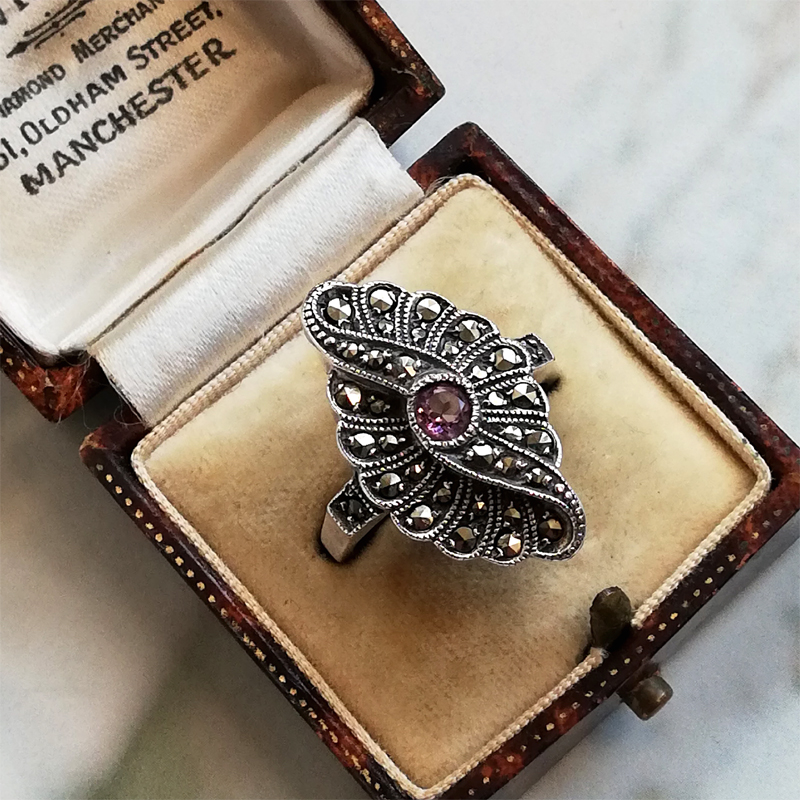 アメジストとマーカサイトのリング