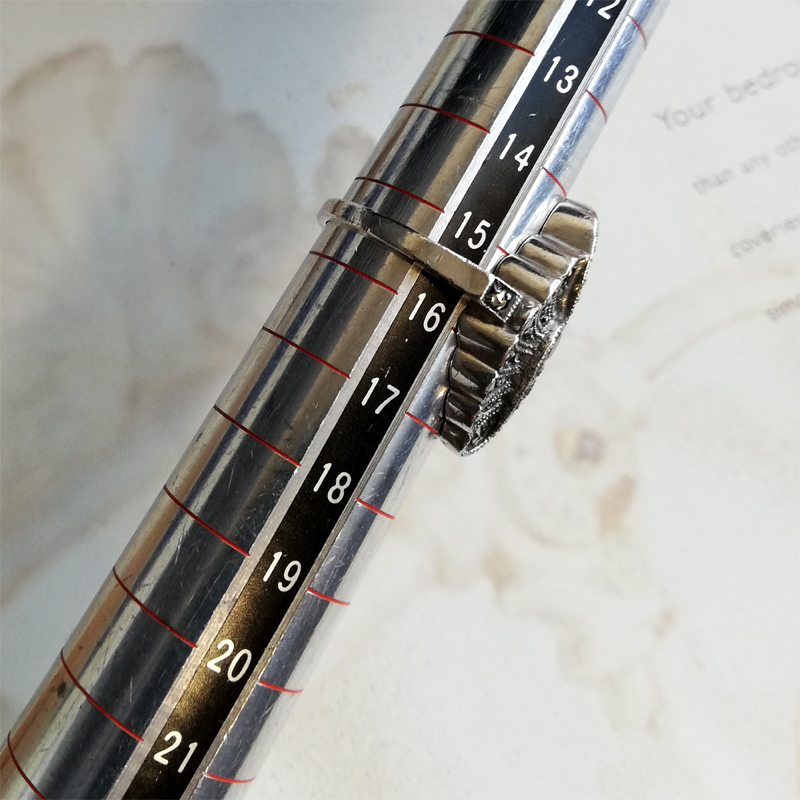 マーカサイトは光を受けてキラキラとダイヤモンドの様に輝き、縦型のフォルムが指元とすっきりと見せてくれるのも魅力です。