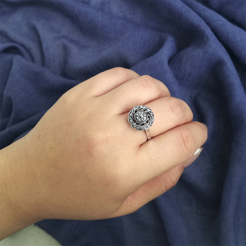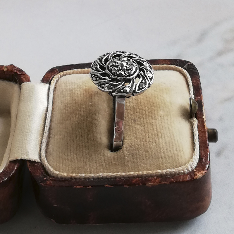 小さなマーカサイトが使われたシルバーリングはフランスから。