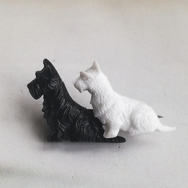 黒と白のテリアが仲良く並んだブローチです。