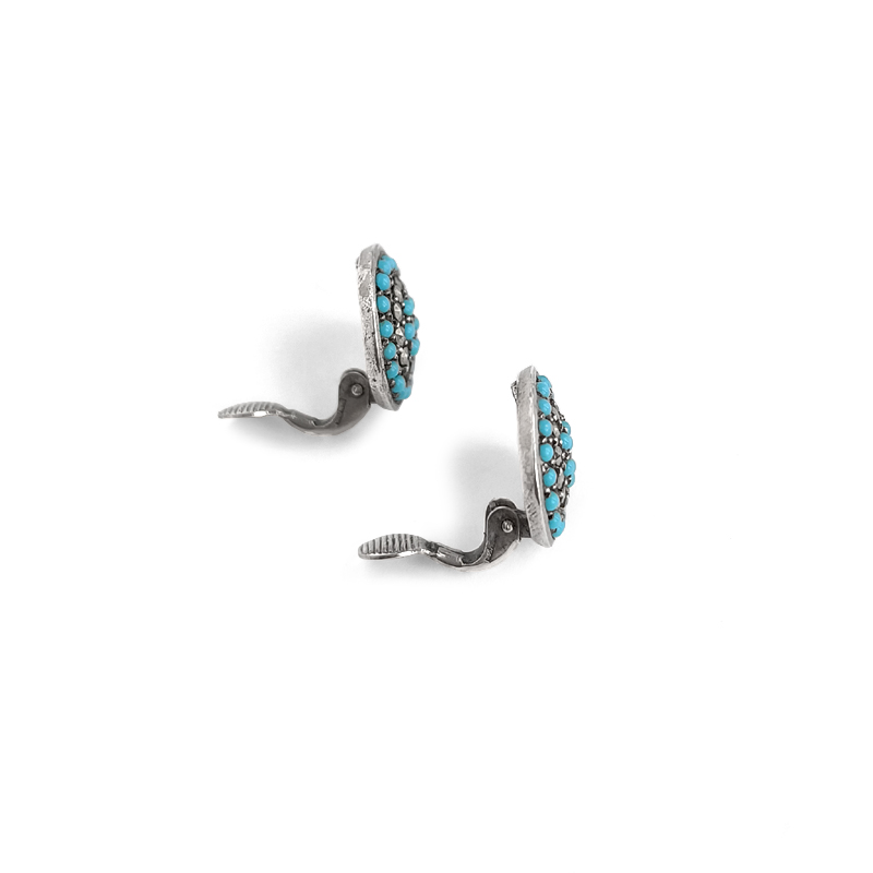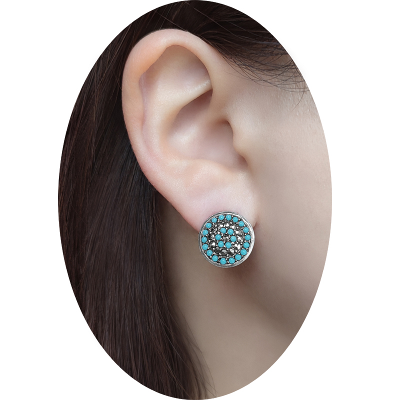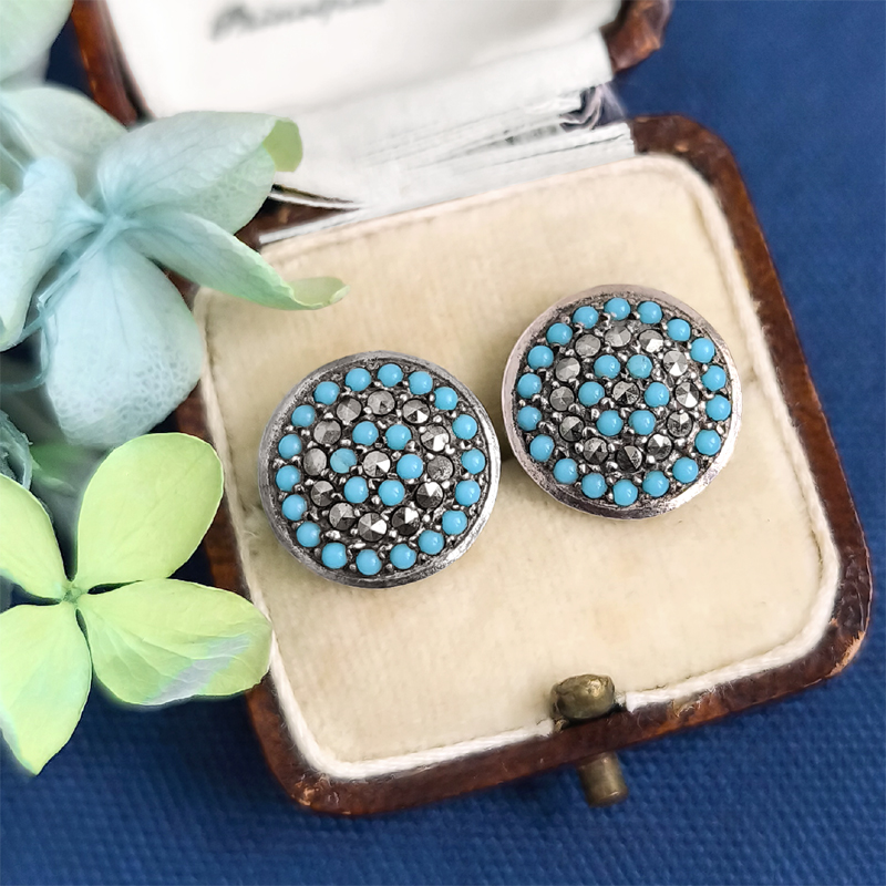 マーカサイトとターコイズを丁寧に配したクラッシクなイヤリング。