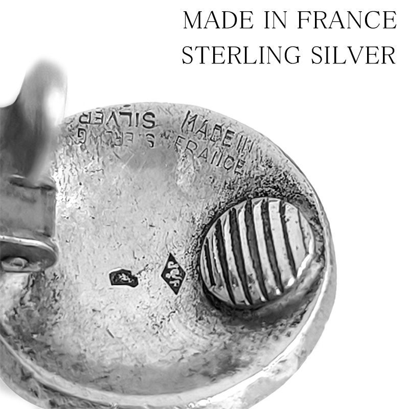 裏面にMADE IN FRANCE、STERLING SILVER、メーカーズマーク、フランスのシルバーに押されるイノシシの頭の刻印があります。