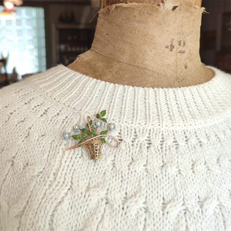 勿忘草 フラワーバスケット ブローチ