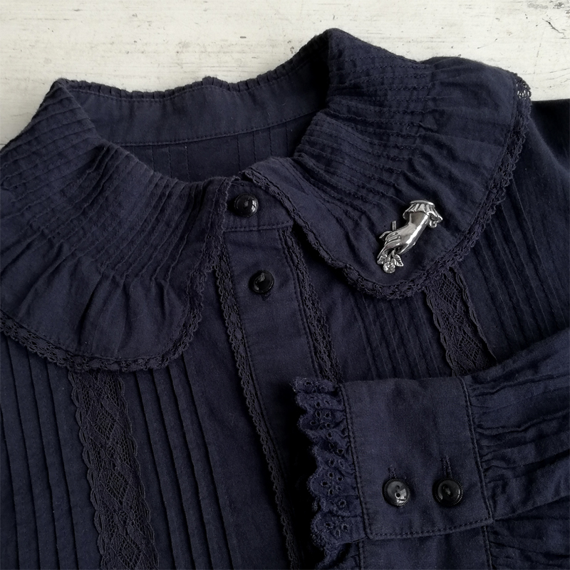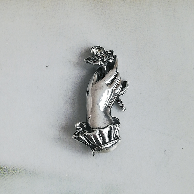 ヴィクトリアンハンドのブローチは黒い素材を使ったモーニングブローチが多い中、純銀製のものは珍しいと言えるでしょう。