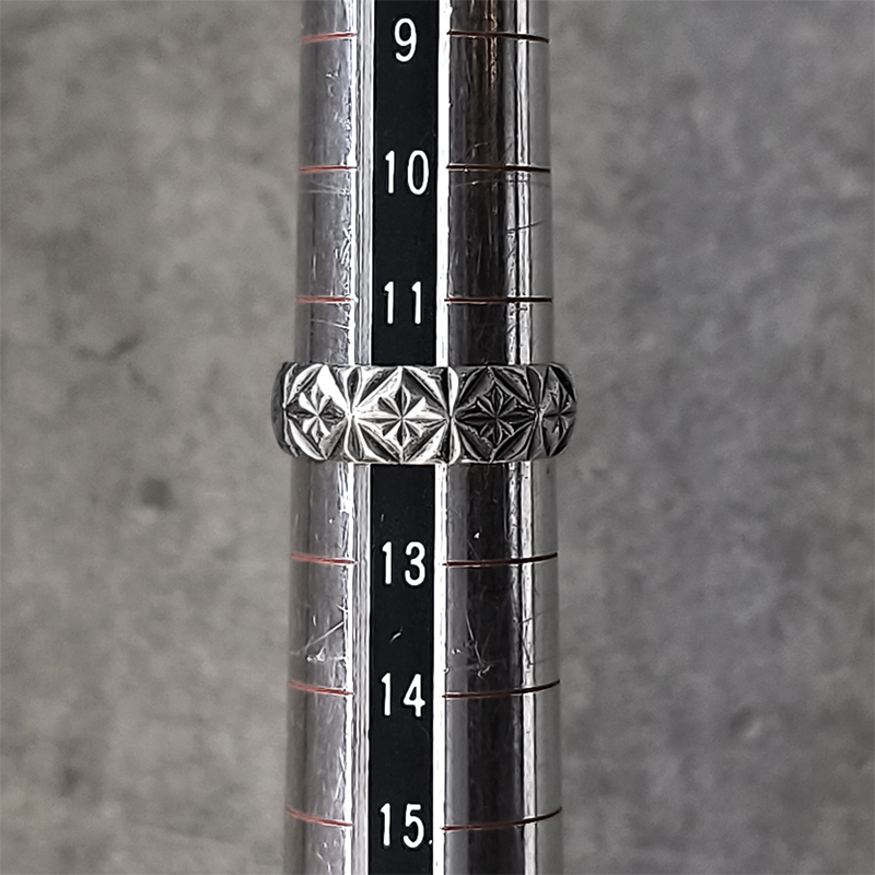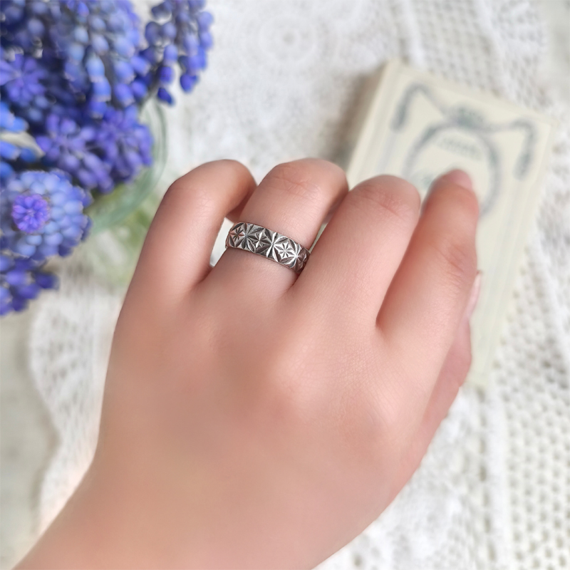 繊細な彫刻がぐるりと刻まれた、ヴィンテージのシルバーリング。