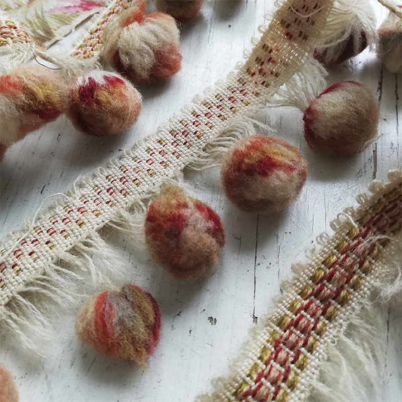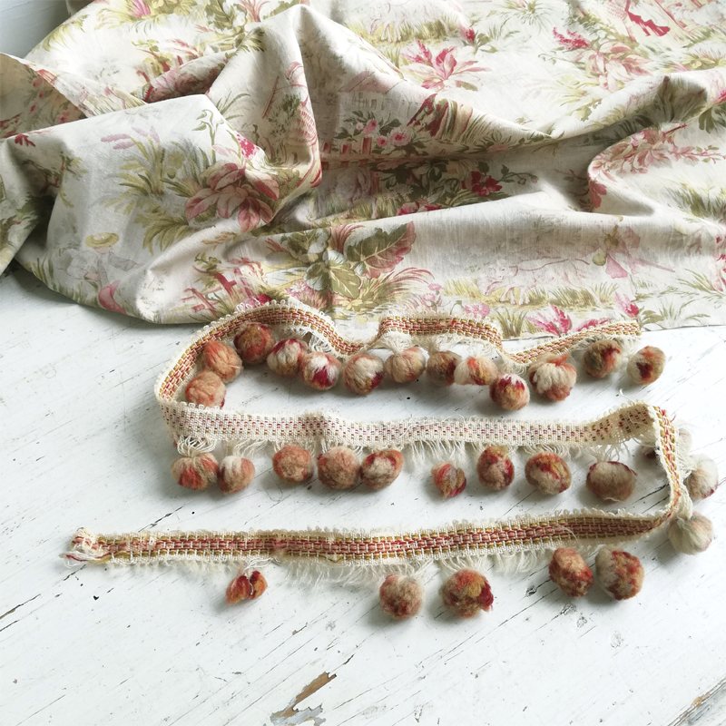 布地の横幅に使える長さですが端の17cmにポンポンの欠損があります。