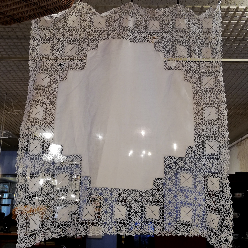 クロシェレースは細い糸でしっかりと丁寧に編まれ、広げると大変華やかな雰囲気です。