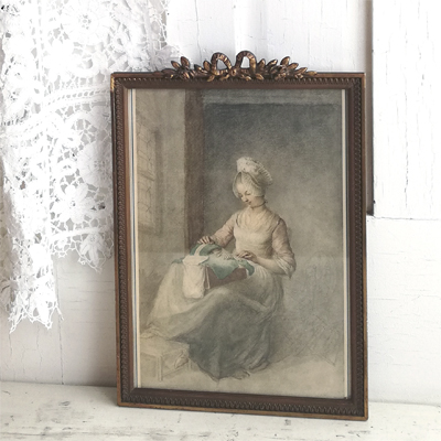 レースを編む女性のリトグラフ入り |