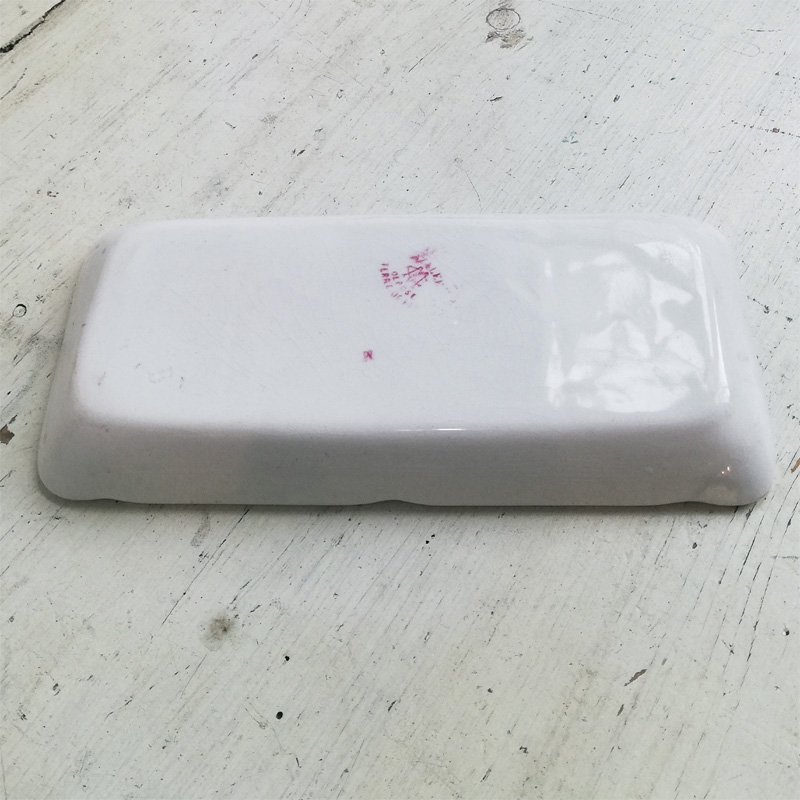 立ち上がりにヒビがありますが、そこから割れる様な危なっかしいものではありません。 ソープディッシュの他、ペンやアクセサリーなどちょっとした小物を置くのに良いサイズです。