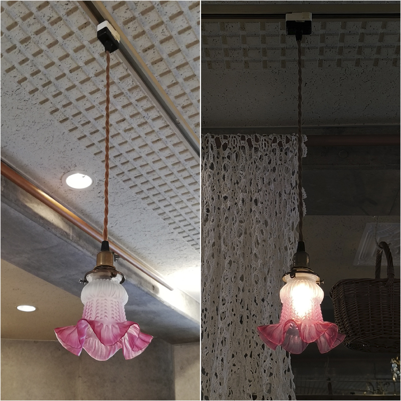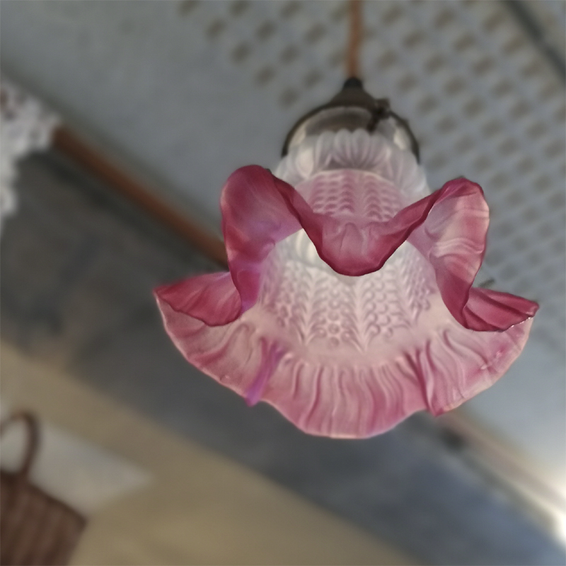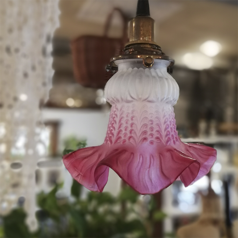 クランベリーピンクが部屋のアクセントになってくそうなフロストガラスのシェードです。
