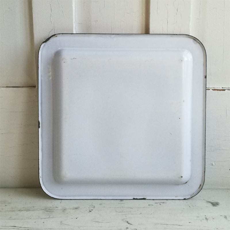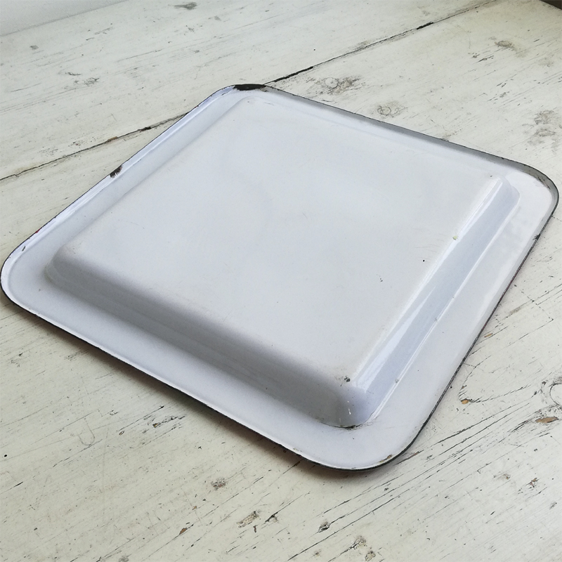 白いホーローに赤いライン、そして黒いロゴがすっきりとした印象のトレイはドイツから。