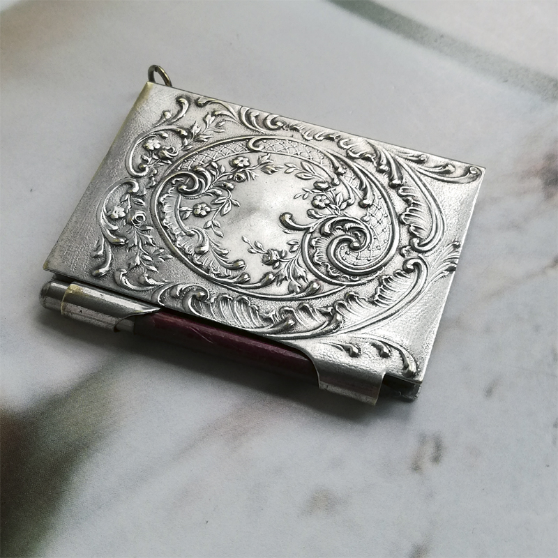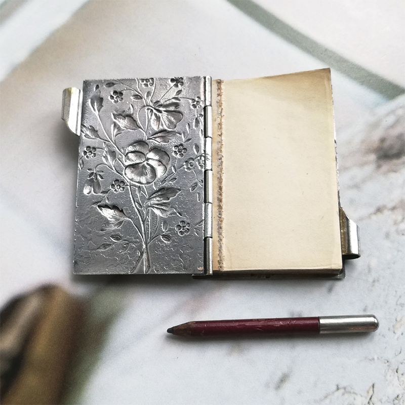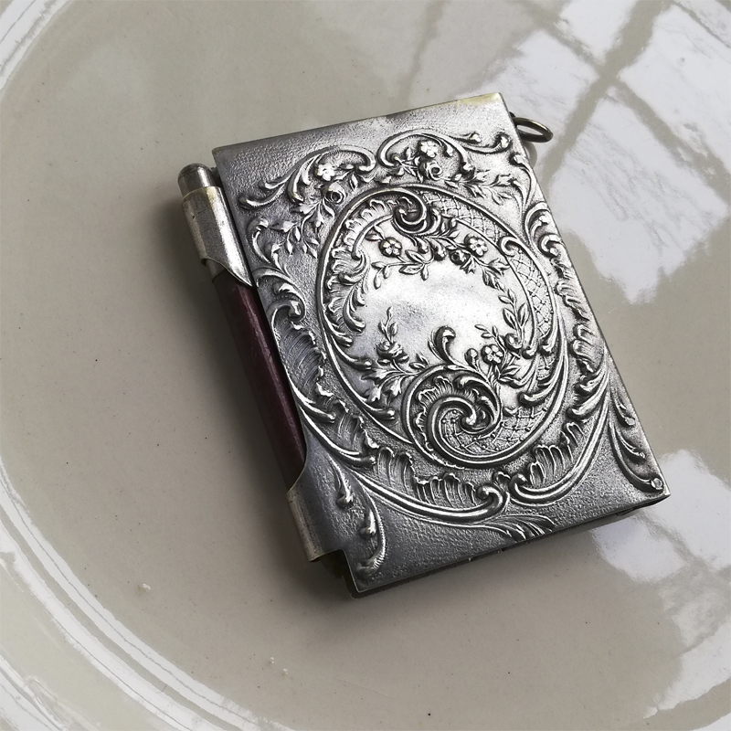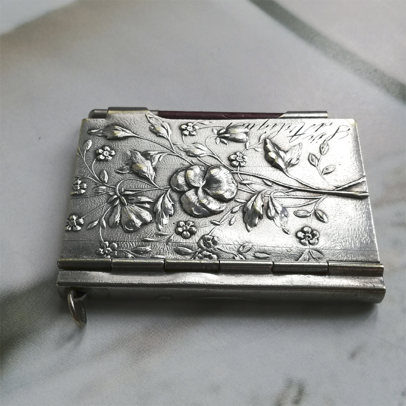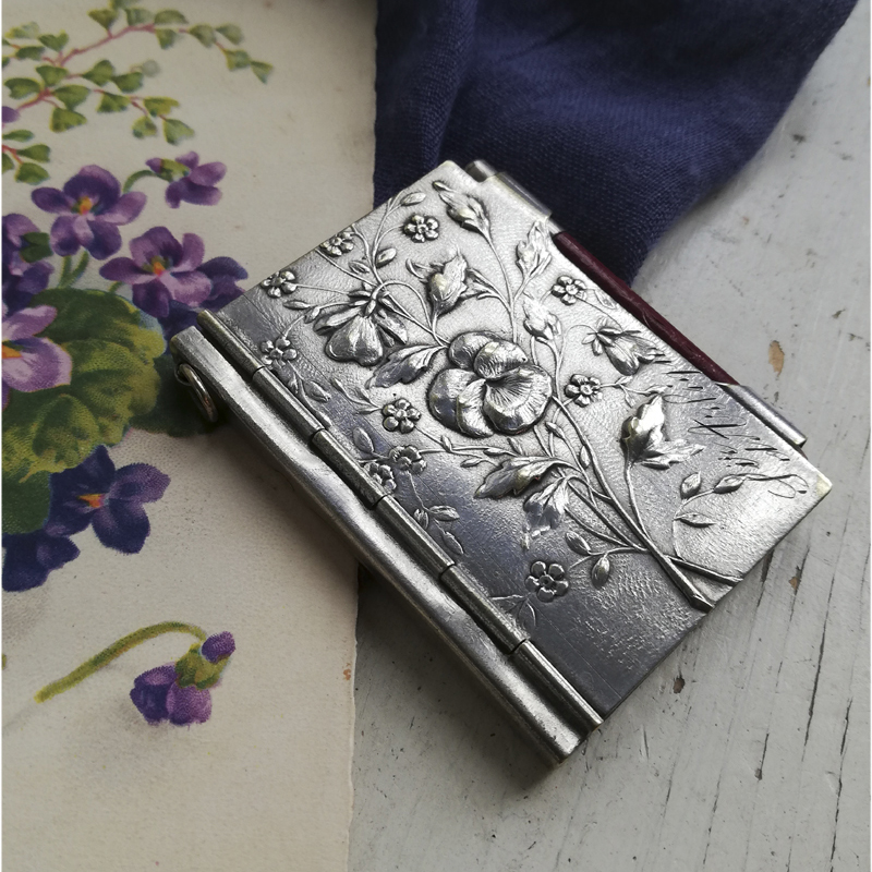 シルバープレート ビオラと勿忘草の装飾 舞踏会の手帳
