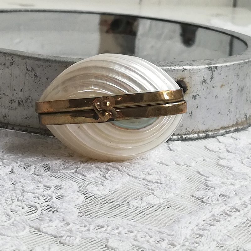 当時マザーオブパールのケースは薬用、シンブル用、ロザリオ用と様々な用途で作られました。
