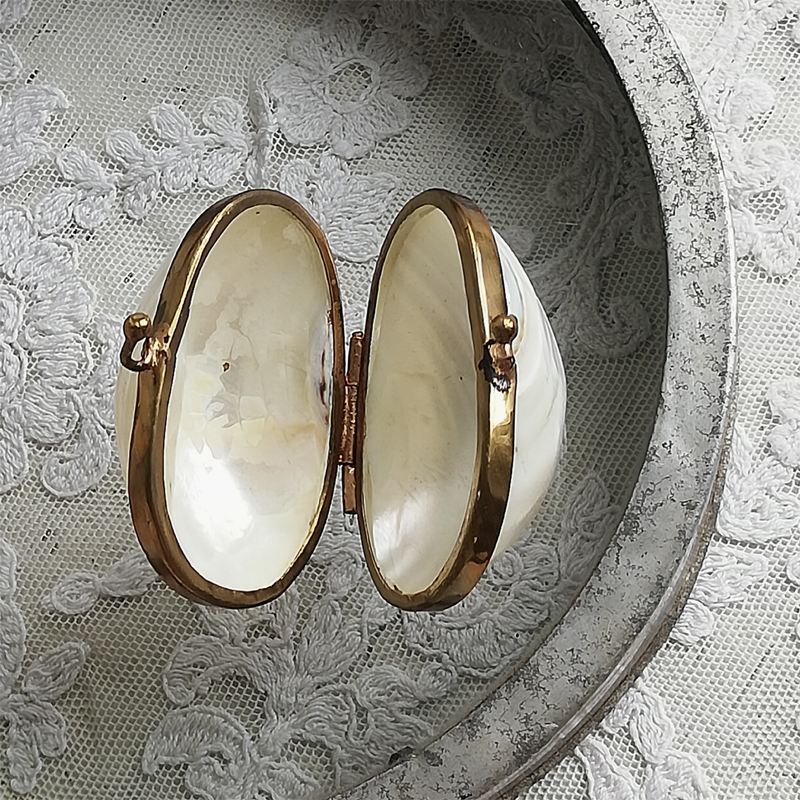 マザーオブパールの丸みを活かして作られた小さなケースです。